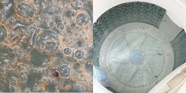 貢献の洗濯槽クリーニング。内部の汚れをプロ仕様の専用薬剤でしっかり除菌洗浄いたします。