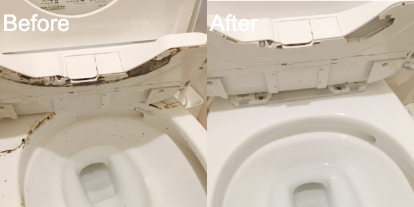 外せる場合は便座を取り外し、尿石などのしつこい汚れもしっかりお掃除します。